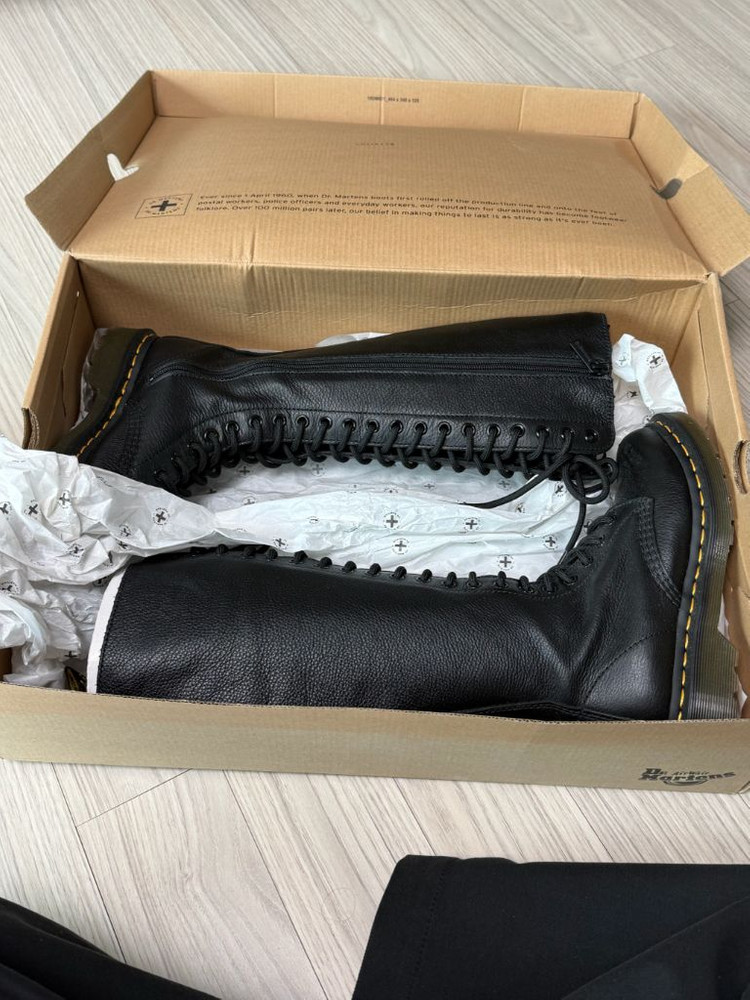 닥터마틴 1B60 와이프 생일 선물로 노원 롯데백화점에서 사줬는데 1번 신고 신지 않아서 판매합니다. 본인은 원래 운동화만 신는 스타일이라 안찾게 되나봐요.. 신발은 보시는 것처럼 한번 신어서 상태가 매우좋고 사이즈는 220인가 225 정도인데 사진에 올려드린 사이즈표 참고 부탁드립니다. *당근에도 동일제품 올려두었습니다.