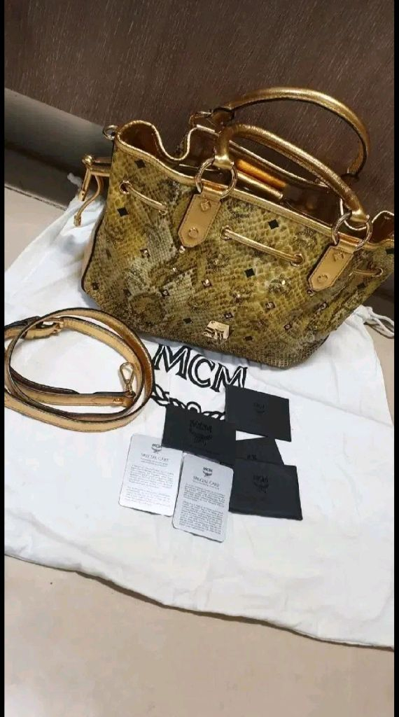제게시물에 이쁜옷 가방 많으니 여러개 구매하심 에눌해드려여 MCM 골드 파인톤 스터드장식 숄더백입니다 가방.스트랩끈 보증서카드 구성입니다 얼마안쓰구 보관하던거라 바닥면 흔적등 생활감정도는 있지만 비교적 괜찮을거에여 크기는 센티로된 마지막사진 단면치수 참고하시구여 같이보이는 MCM 미니 스터드장식 사첼백 사용감 189000 본품 골드 파이톤 스터드장식 숄더백 289000 제게시물에 따로올려져 있으니보셔여