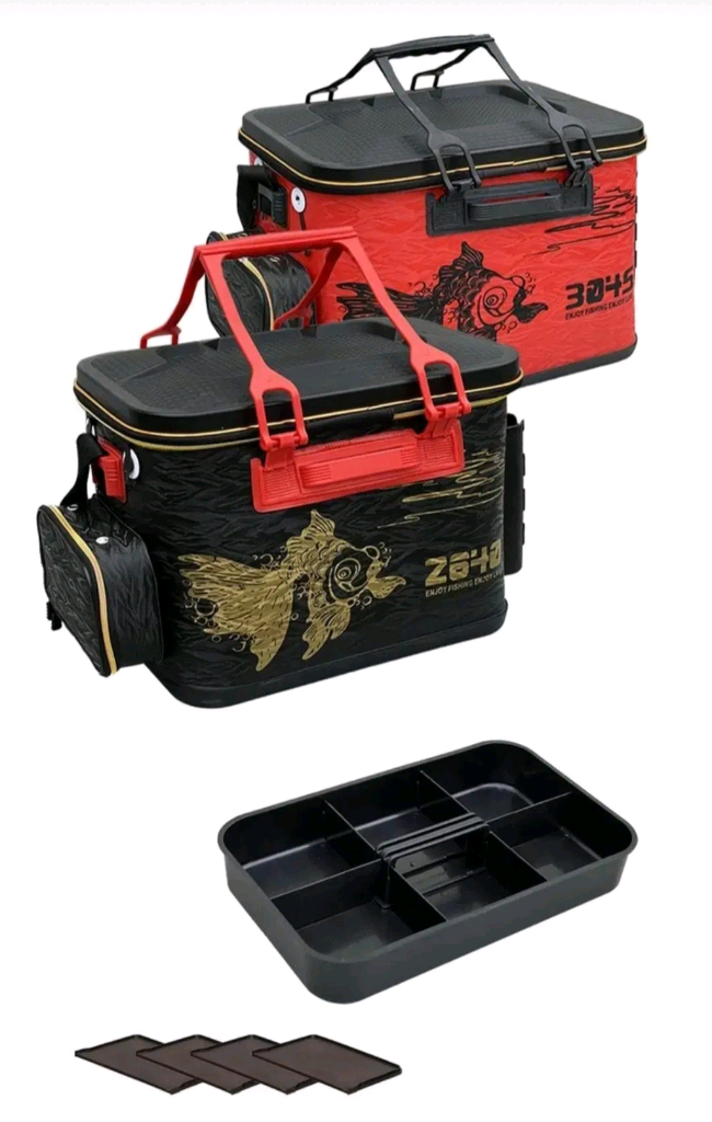 고급하드형 밑밥통겸 살림통으로 2중지퍼를 부착하여 개폐시 편리하고 옆면에 낚시대 거치대 2개를 부착하였으며 거치대 내부에 낚시대를 꽂았을때 낚시대가 수직을 유지하므로 기울어지거나 넘어지지 않습니다. 앞면과 옆면에 보조포켓이 있고 앞면에 소품등을 수납할수 있는 포켓이 있어 편리합니다. 기포기호스 구멍이 있어 옆면 포켓에 기포기를 수납하신후 살림통으로도 사용하시면되며 밑면에는 미끄럼방지를 위해 돌출되어 있으며 튼튼한 손잡이와 어깨끈이 있어 이동시 편리합니다. 내부에 수납형 트레이가 있어 소품 수납을 할 수 있어 편리함을 더했으며 윗면 뚜껑도 하드타입으로 생산되어 튼튼합니다. ( 레드는 품절되어 블랙으로 보내드립니다 ) 45cm도 있으며 블랙과 레드중 선택 가능하고 40000원입니다. 모두 미사용품이고 택배비 4000원이며 다량주문도 가능하니 원하시는 사이즈와 수량을 톡 주시면 결제 하실수 있게 금액 수정하여 올려드리겠습니다.