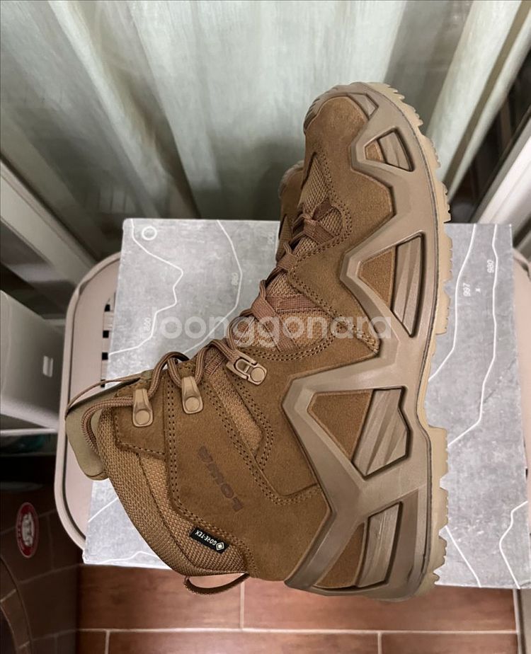 로바 제피어 코요테 와이드 사이즈: 일본 사이즈 265, 유럽 42, 영국 8, 미국 9 판매합니다. 집 근처 다닐 때만 빼고 몇 번 착용 안 해서 바닥 말고는 오염이나 변질없이 새제품 때랑 차이 없습니다. 태그랑 상자 같이 드립니다. (배송비 4,000)