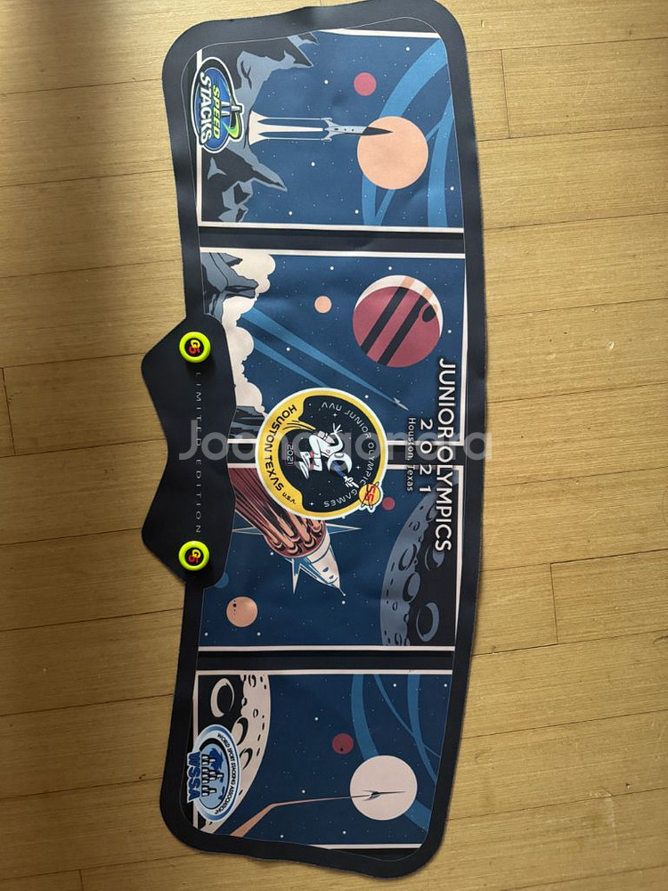 스피드스택스 주니어 올림픽 매트입니다. 2021년 휴스턴 주니어 올림픽 기념으로 제작된 한정판 제품입니다. 현재 구하기 어렵습니다.