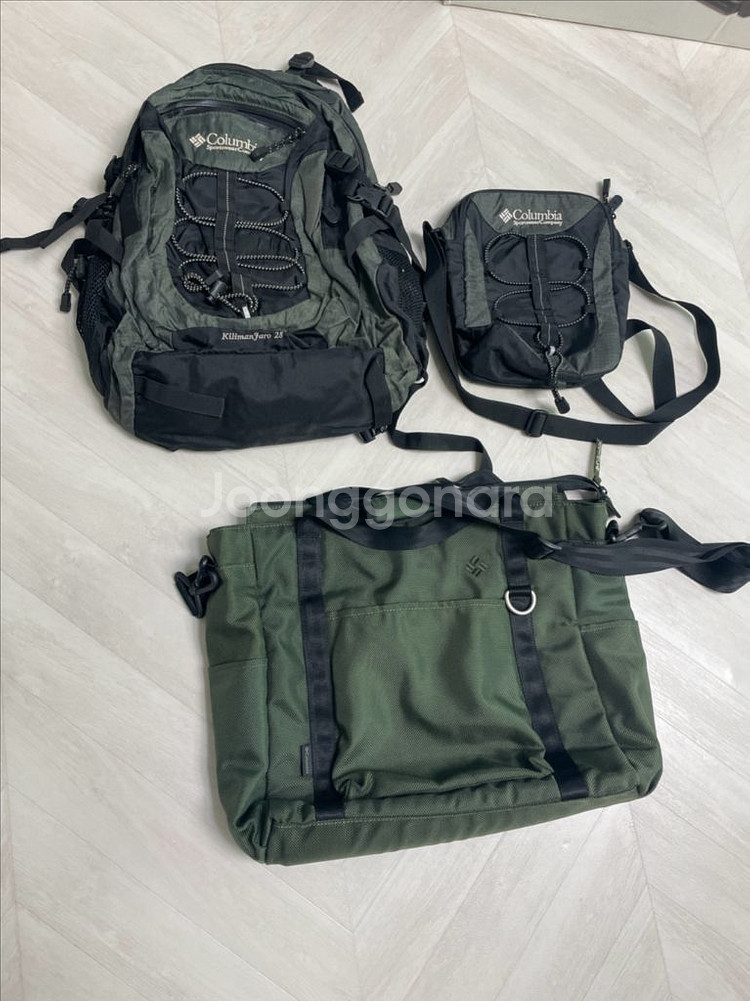 안녕하세요 콜롬비아 등산용 백팩과 파우치, 보조가방이 포함된 세트예요. 사용감은 있지만 기능적으로는 문제없고 등산이나 여행용으로 활용하기 좋습니다. 실용적인 구성으로 가성비 좋은 제품이에요. 광명 철산동입니다