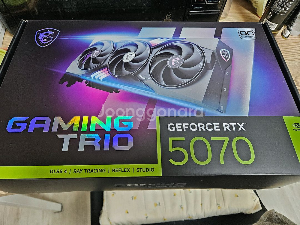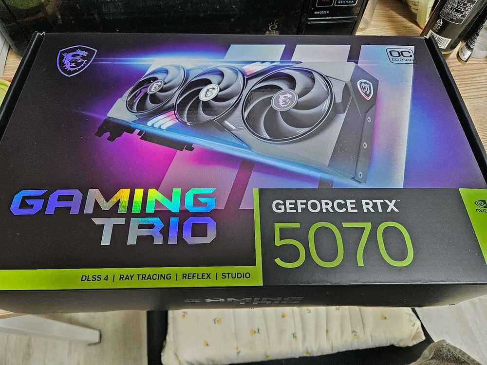 GeForce RTX 5070 게이밍 트리오 그래픽카드입니다. 2월 2째주에 받아서 테스트만 해보고 팝니다. as 시리얼기준 20290128. 영수증날짜 2월10일. 그래픽카드 지지대와 전원케이블 그대로 있습니다. 수도권 아님. 뽁뽁이로 둘러싸서 안전배송합니다. 안전거래로 구매해주세요. 다나와 현금가 보다 싸게 팝니다.