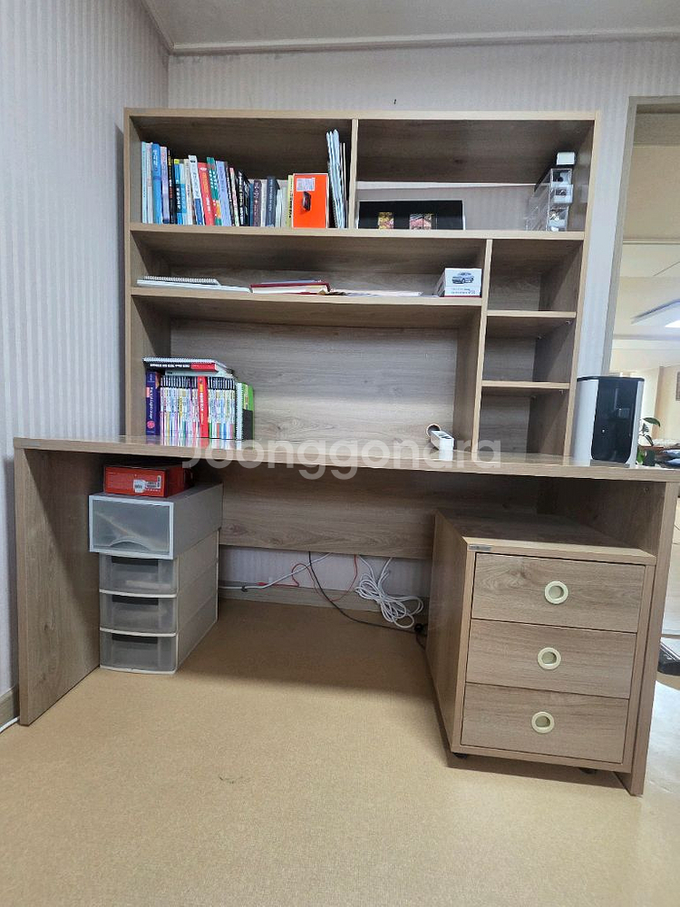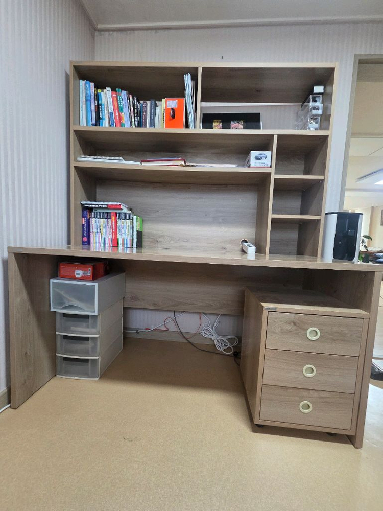 현대리바트 책상 판매합니다 책상은 책꽂이와 서랍장이 있어 수납이 용이합니다 규격 가로 × 세로 × 높이(cm) 책상 150 × 75 × 75 책꽂이 150 × 30 × 105 서랍장 40 × 40 × 55