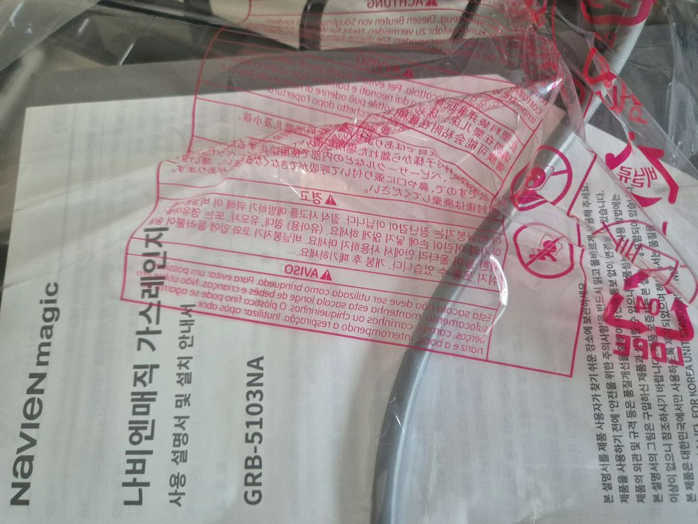 나비엔 매직 가스레인지 GRB-5103NA 새제품입니다. 새집으로 이사오면서 인덕션을 설치해서 기존 레인지 내놓습니다. 박스에 담겨 있고, 사용 설명서 및 설치 안내서도 포함되어 있습니다.