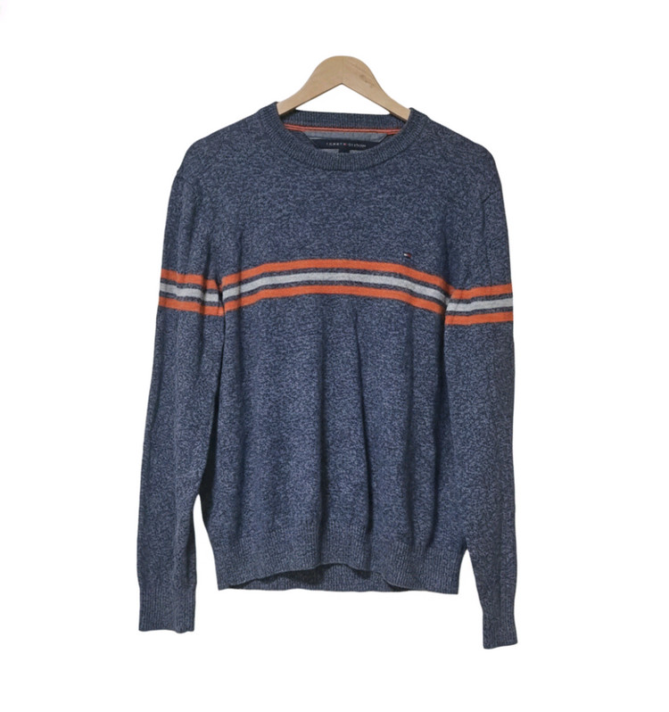 타미힐피거 니트 L사이즈 블루계열색상 가슴반품 55 총장 65 차분한 블루그레이(또는 멜란지 느낌의 네이비) 바탕에 오렌지와 화이트 스트라이프가 들어가 있어 포인트 아이템으로 좋습니다. 적당한 두께감의 니트로 단독으로 입거나 셔츠 위에 레이어드하기 좋은 스타일입니다. 문의 없으시면 바로 안전결제해주시면 됩니다!