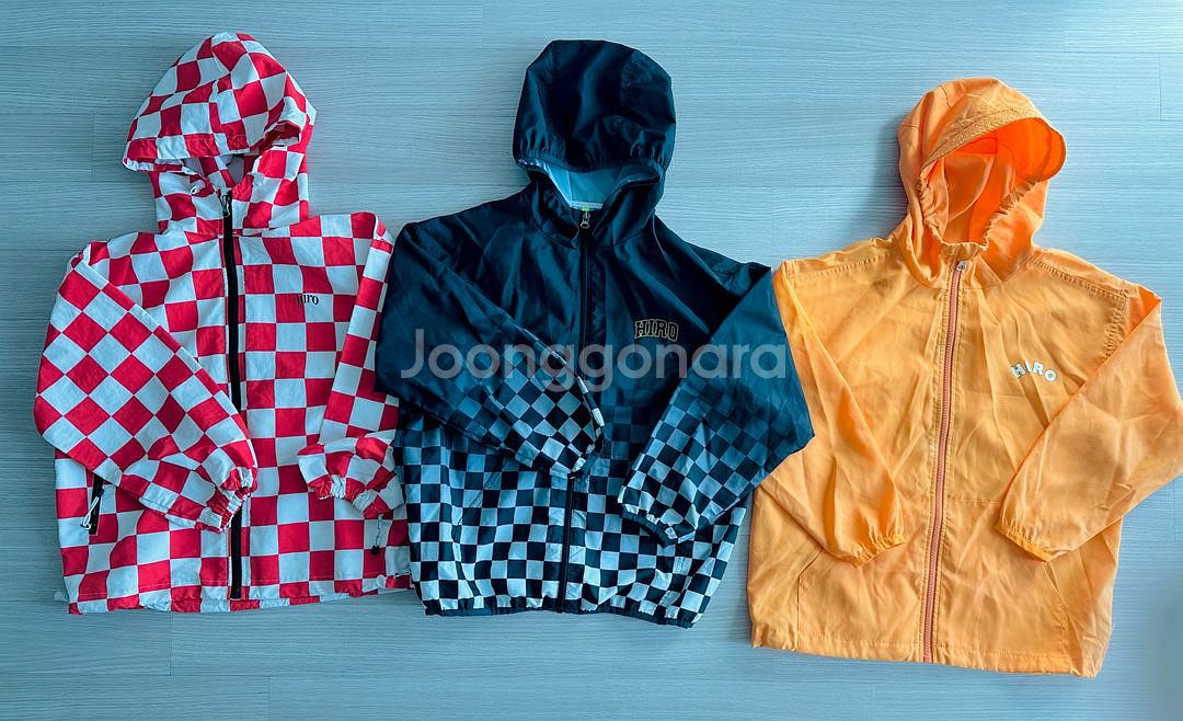 히로 바람막이 3벌 140사이즈 사진 잘 보시고 채팅주세용! 레드 체커,블랙 체커는 한두곳 티안나는 얼룩. 변온되는 주황색 바막은 뒷판에 자잘한 얼룩 몇가지 있어요 예민하신분은 패쓰해주세요 부담없이 편히 입히실분만~!! 일괄 택포