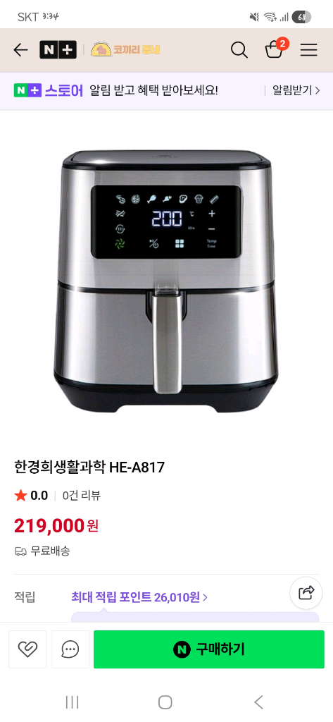 개인정보(거래정보)를 주고받는 행위는 사기에 노출될 수 있으므로 즉시 중고나라로 신고해 주세요한경회 에어프라이어기 HE-A817 -올 스텐리스 제품 -200C 고온 조리 가능 -5L 대용량 분리형 바스켓
