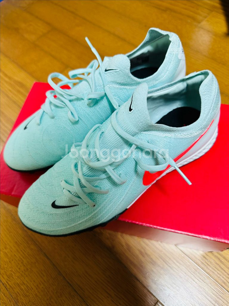 나이키 팬텀gx2 프로 터프화 입니다. 1회 20분 정도 신었구요 그냥 때만 살짝묻어있는 새상품이라고 해도 무방합니다. 박스x 신발만 있습니다. 사이즈는 245입니다.