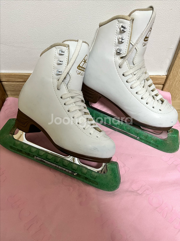 잭슨 피겨스케이트 피겨화입니다 잭슨 1791모델 1과 1/2 C 사이즈 입니다 판매처 홈페이지에는 195mm로 나와있어요 부츠에 마커 자국과 스크래치 있고 사용감 있습니다 입문용으로 이상 없어 보이지만 중고인점 감안해서 구입해주세요 플라스틱 날집 같이 드릴게요