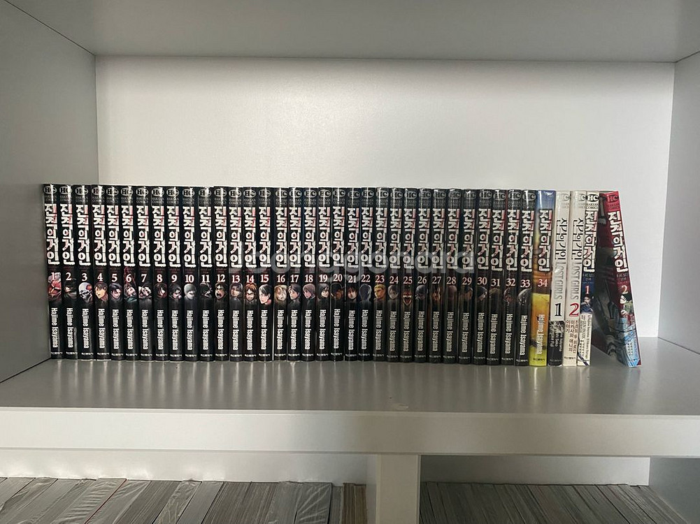 소장용 진격의 거인 만화책 1~34권 + 외전 4권 세트입니다. - 외전 (로스트 걸 1,2 + 후회없는 선택 1,2) - 23~34권은 미개봉