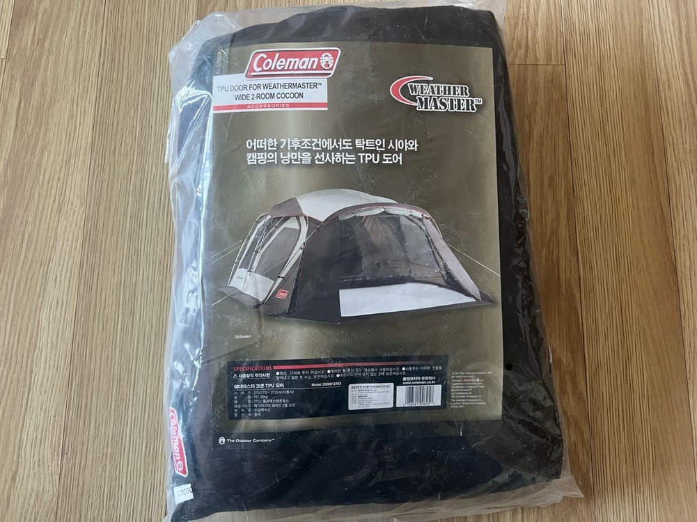 콜맨 웨더마스터 와이드 2룸 코쿤에 설치하는 TPU 도어입니다 미개봉 새상품입니다 어떠한 기후 조건에서도 내구성이 좋고 캠핑의 낭만을 선사하는 TPU 소재로 제작되었습니다