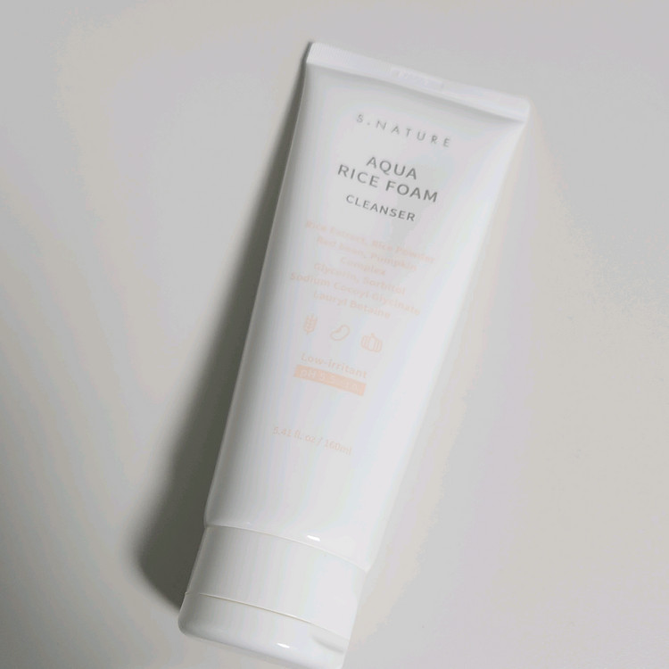 에스네이처 아쿠아 라이스 약산성 폼 클렌저입니다 - 2회 사용 - 쌀 추출물, 붉은팥, 호박 함유 - pH 5.5(±1.0) 약산성 비건 클렌저 - 피부 속 노폐물, 미세먼지, 선크림까지 순하게 맑게 세정해줍니다 사용기한은 28년 1월 5일까지입니다