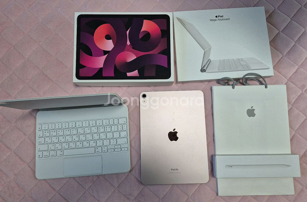 2년전 아이 대학 입학시 풀세트 구매했습니다. 강남 애플스토어에서 구매하였고, 아이패드 에어 5세대 256GB와 아이패드 매직키보드 정품 및 애플 펜슬이 함께 구성된 세트입니다.액정 보호 필름은 서현 ak백화점에서 당일 부착하였습니다. 구입후 학과특성상 학교에 액정타블렛이 있어 거의 사용못하고 보관만 한 새제품입니다. 박스와 구성품이 모두 포함되어 있고 애플쇼핑백도 그대로 있습니다. 앞으로도 사용할 일이 없어 판매합니다. 정품 매직키보드로 노트북처럼 사용할 수 있어 정말 유용합니다! 직거래는 서현에서 가능합니다.