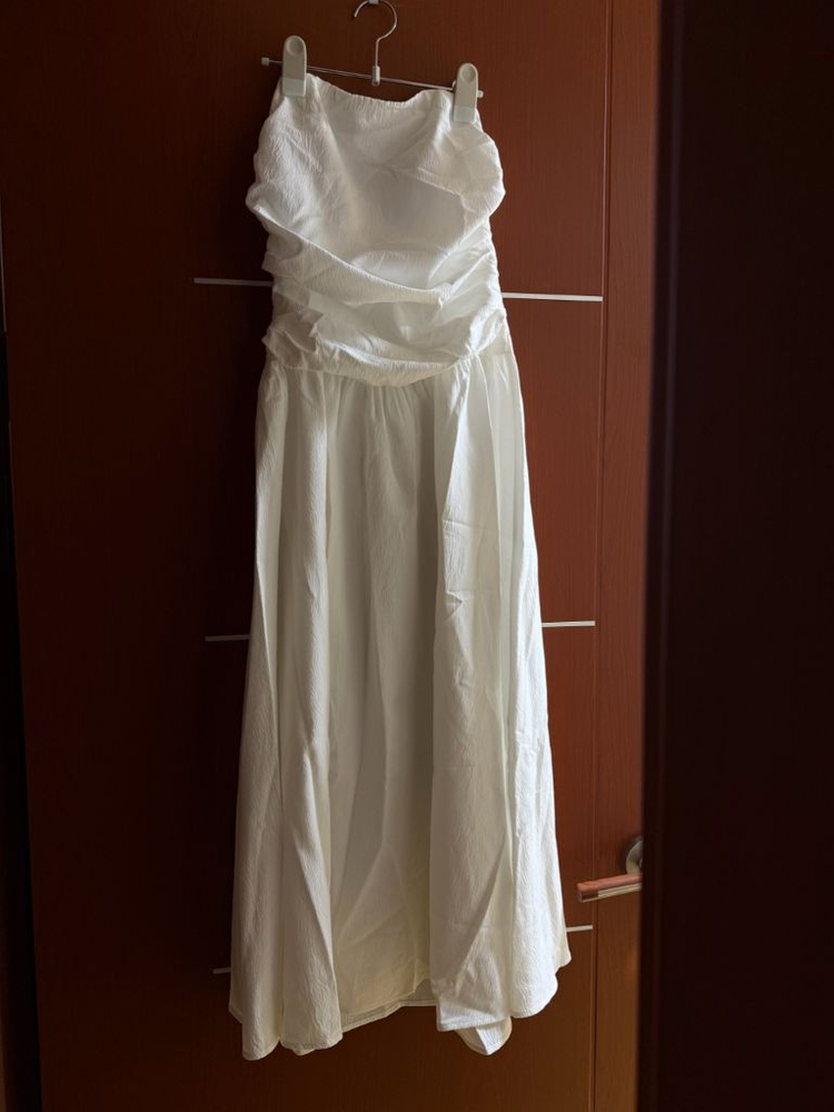 셀프웨딩 드레스로 구매했던 화이트 튜브탑 롱원피스인데, 다른 제품을 구매하게 되서 입지 않았습니다! 38,800원 주고 구매했습니다! 사이즈 M (상세사이즈 사진 첨부) 지퍼는 옆쪽에 있고, 튜브탑 윗쪽에 실리콘처리가 되어 흐르지 않을 것 같아요. 셀프 웨딩 아니더라도 여행가서 입거나 평소에 상의 레이어드 해서 입어도 예쁠 것 같아요~ 택포 15000원입니다