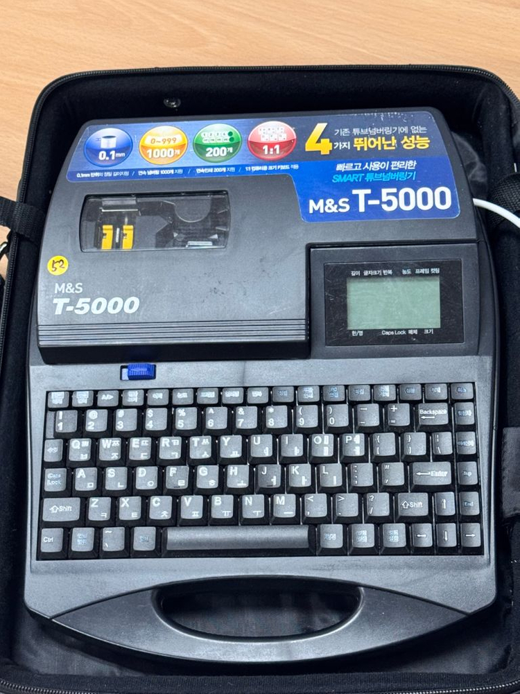 M&S T-5000 튜브 프린터 판매합니다 (새빛맥스 넘버링튜브 백색 전규격 UL 인증 UL224 VW-1 원형 난연) 0.1mm 단위로 정밀하게 인쇄할 수 있고, 최대 1000개까지 연속 인쇄가 가능합니다 자주 사용하는 번호는 200개까지 저장할 수 있어 편리하며, 1:1 인쇄 기능도 지원하는 스마트 튜브넘버링기입니다 전용 가방에 보관되어 있어 깔끔하고 사용감이 적어 상태가 매우 좋습니다 케이스와 전원 어뎁터 포함입니다 UL224 VW-1 1개도 같이 드립니다 직접 가져가셔야 합니다 수내역 부근 입니다 중고거래 특성상 교환환불불가