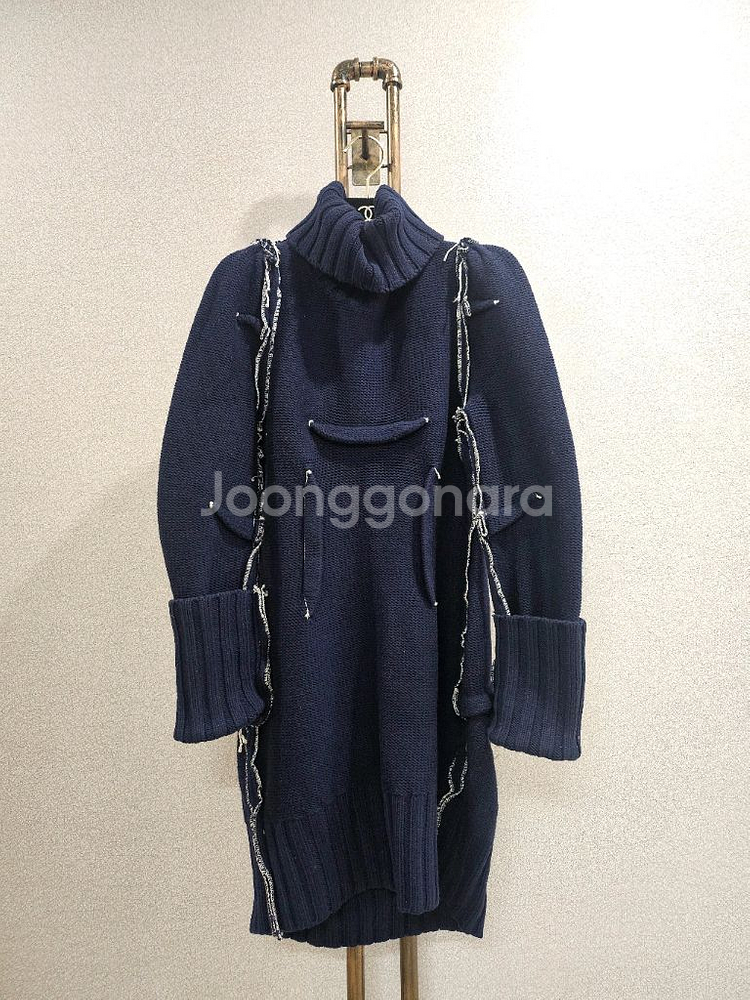 가슴단면44 총장85 메종마르지엘라 콜라보 제품 옆구리라벨 절단 두툼한 니트원핏 네이비 독특한 디자인으로 소장가치 있어요 배송비는 별도 추가됩니다 교환반품은 안받으니 유념해주세요