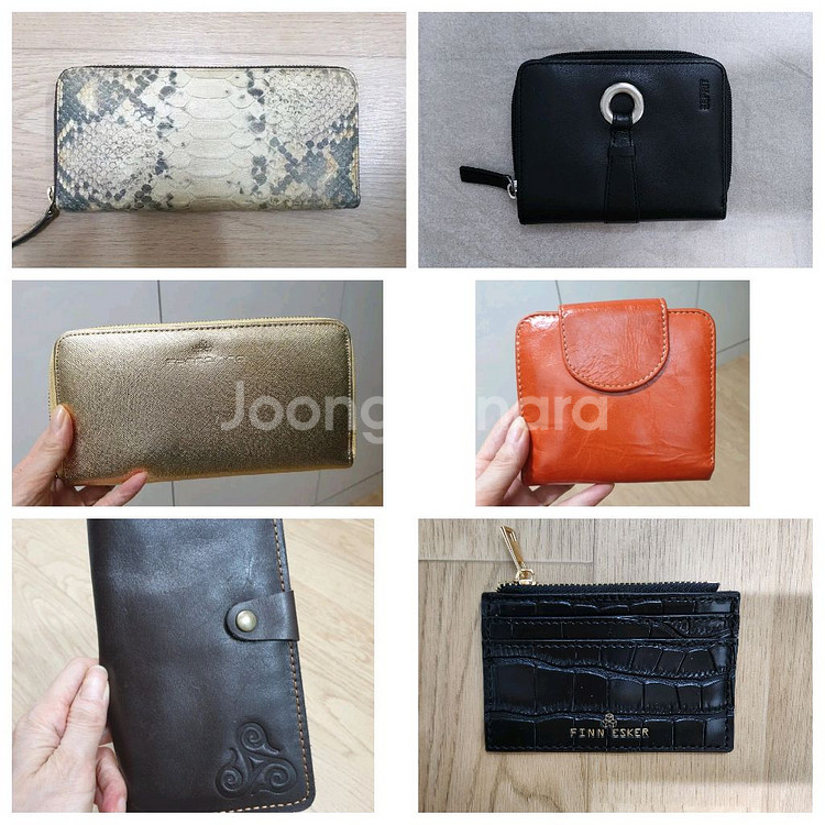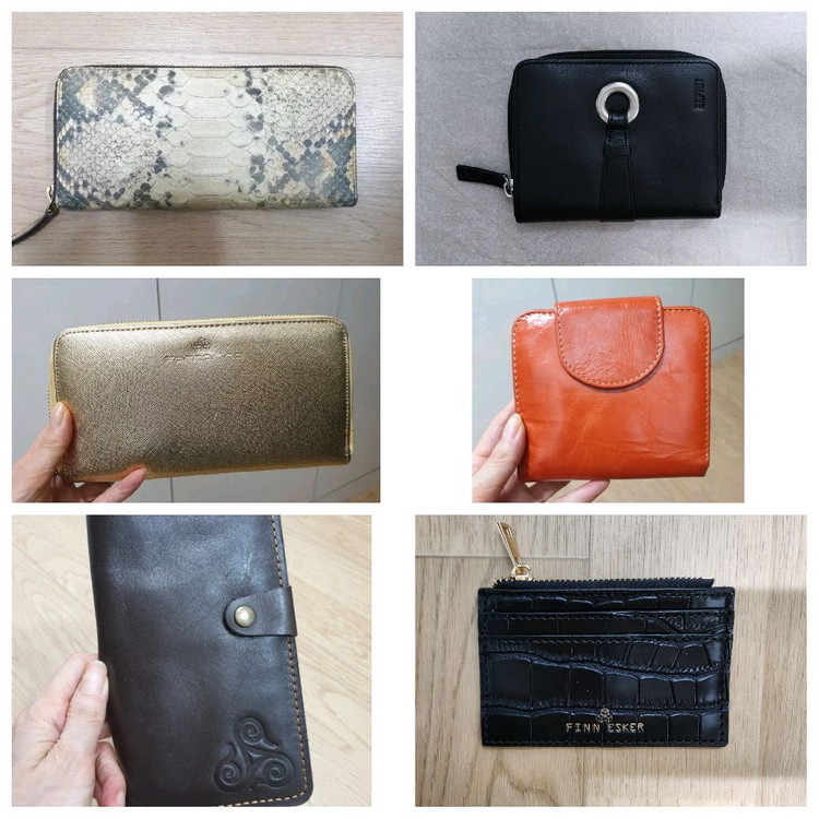 전체 다 보관만 해둔 새상품입니다 사이즈는 사진에 있습니다 왼쪽줄 1.앤클라인가죽-정품이며 리얼가죽 5만원 2.포나리나 지퍼장지갑-색상이 밝은 금색으로 이쁜색인데 사진상으로는 어둡게 나오네요 색상 이쁩니다 26000원 3.리얼가죽-한번도 사용안하고 보관만했는데 가죽이 부드러워서 스크래치 살짝 있습니다 35000원 오른쪽줄 1.에스프리 리얼가죽-블랙 5만원 2.주황소가죽지갑-흠없이 깨끗합니다 리얼 소가죽 28000원 3.핀에스커 카드지깁-5000원