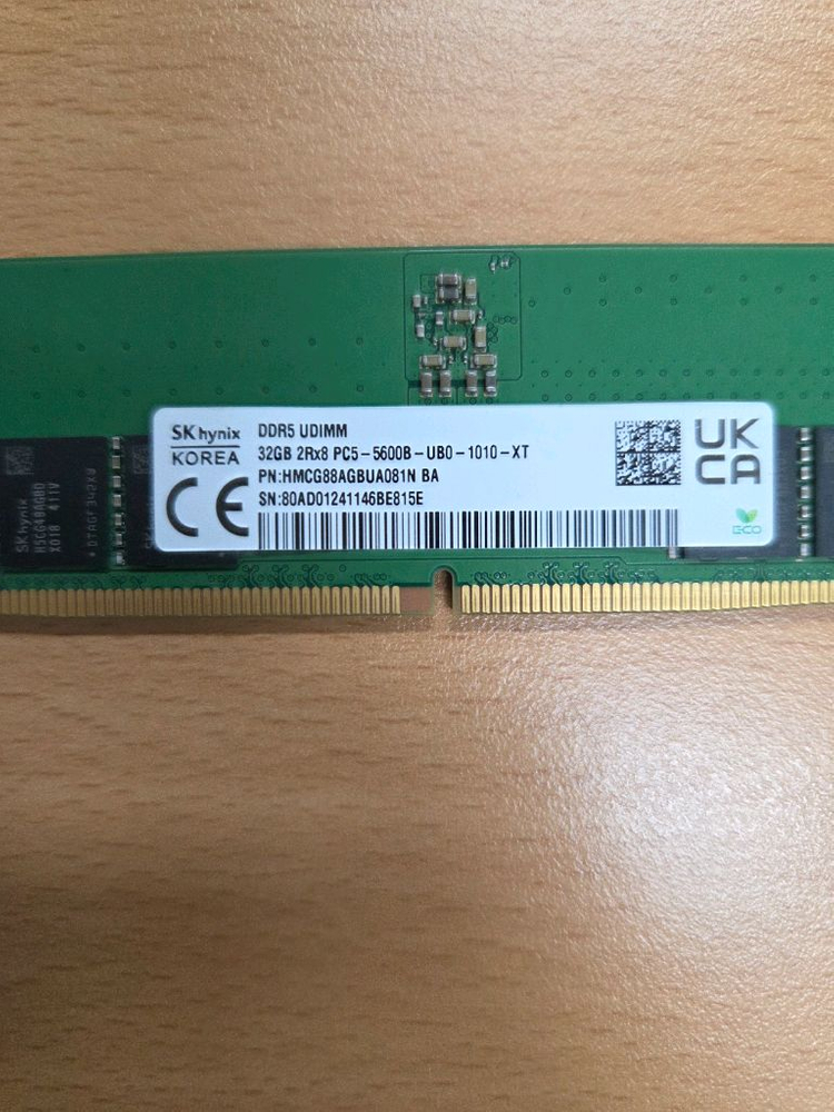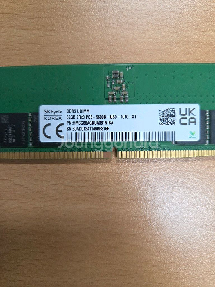 DDR5 32GB UDIMM 메모리입니다. 정상 작동 확인된 중고 제품으로 상태 양호해요. 컴퓨터 업그레이드나 새로 장착하실 분께 추천드립니다.