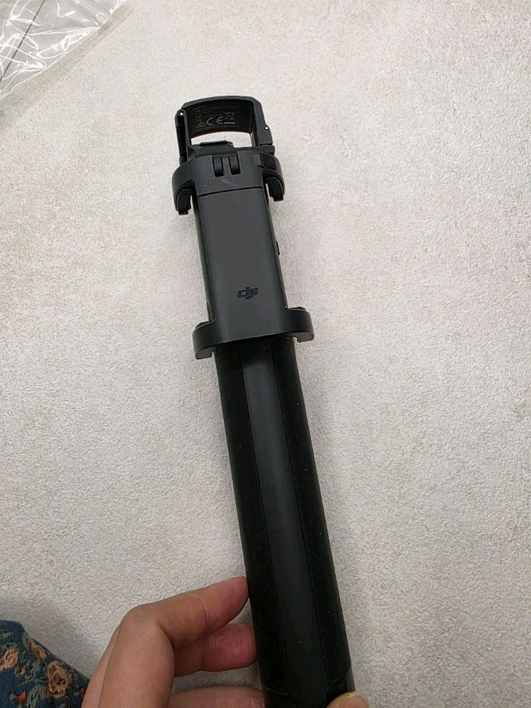 DJI 오즈모 셀카봉 삼각대입니다 검정색이며, 버튼과 기능키들이 보입니다 텔레스코픽으로 확장 가능하여 다양한 각도에서 촬영이 가능합니다 안정적인 촬영을 도와줍니다
