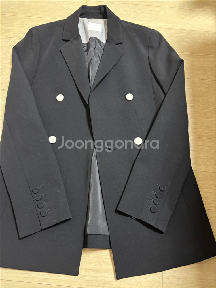고급스러운 차콜그레이 컬러의 더블브레스트 정장 자켓이에요. 화이트 단추와 깔끔한 실루엣으로 비즈니스나 포멀한 자리에 완벽해요. 중고이니 고려해주시고 보관만 오래한 상품입니다. 개인거래로 반품 환불어려워요