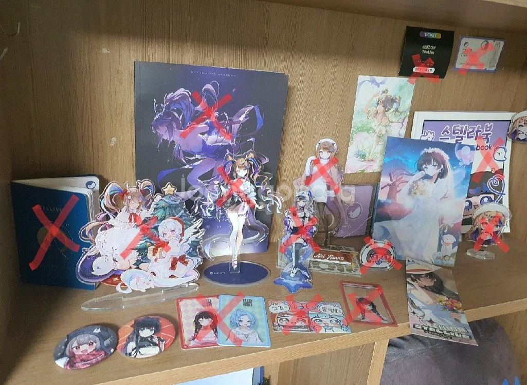 전부 개봉상품이라 미세한 기스가 있을 수 있으나 잠깐 전시후 보관중이라 모두 상태 좋습니다. 왼쪽 뒤부터 순서대로 1. 크리스마스 칸나유니 by Factory (비공식) - 판완 2. 2023 서코 아크릴 스탠드 칸나 (공식) - 판완 3. 2023 AFG 애니플러스 아크릴 스탠드(공식) - 판완 4. 2023 AGF 윈터 아크릴 스탠드 (공식) - 판완 5. 비늘이 칸나 코롯토 by 아냐냥 (비공식) - 판완 6. 2024 시라유키 히나 생일 아크릴 패널(공식) - 3.5 7. <바침대 파손>미니 스탠드 (비공식) - 판완 8. 시로,히나 캔뱃지 개당 - 0.5 9.유니버스 콜라보카페 포토카드 개별 (타비,히나) - 판완 10. 치지직 특전카드(미개봉) - 판완 12. 유니버스 콜라보카페 특전카드(히나) - 판완 11. 애니메이트 섬머 특전카드 히나 - 0.3 어떤건지 잘 모르겠다면 동그라미 표시해서 사진 주세요