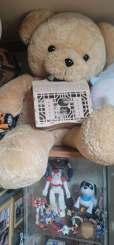 여러 종류의 귀여운 인형들을 판매합니다 - 곰인형 - 라인프렌즈 곰인형 - 쿠로미 인형 - 챔피온 티셔츠를 입은 개구리 인형 진열장에 보관만 해놓은 인형들입니다
