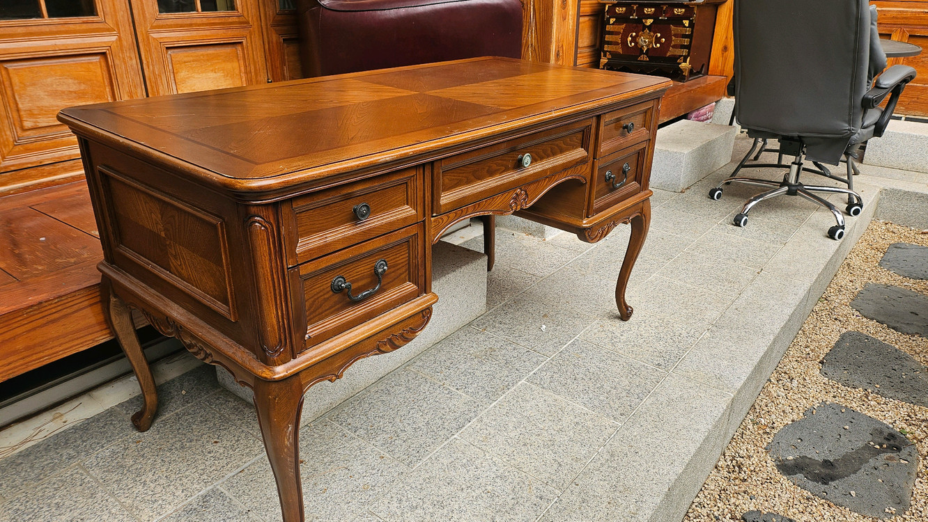 앤틱 스타일 책상입니다 상판 모퉁이에 약간의 기스(사진)있어서 싸게 내놓습니다 상판 두꺼운 유리 포함드립니다