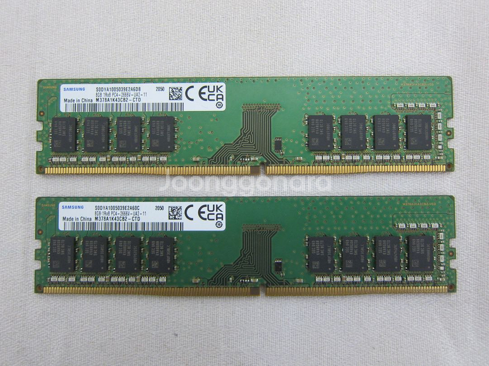 첨부된 모든 사진은, 판매하는 제품을 촬영한 실사진 입니다 문의하시기 전에, 판매글의 내용을 확인하시기 바랍니다 (제품명, 구성품, 보증기간, 배송방법, 등등) ** 결재하지 않은 예약은 절대 불가 합니다 (예약자 90% 이상이 약속을 안 지켜 어쩔 수 없습니다) ** 네고 문의는 사절합니다 (답변 없이 차단 합니다) [DDR4] 삼성전자 DDR4-2666 16G(8Gx2) (PC4-21300) A급, 중고제품 입니다 (채굴 X, PC방 X) 일반 데스크탑용 메모리 입니다 * DDR4 8G x 2개 가격 구매 전에 반드시 호환 여부 확인하시기 바랍니다 반도체 포장용 알루미늄 호일에 싸고, 에어캡 포장으로 안전하게 보내드립니다 * “구매 가능한가요?”, “팔렸나요?” 문의 필요없이, 바로 안전결재로 구매 하시면 됩니다 * 채팅이나 톡 주시면, 최대한 신속히 답변 드립니다 (새로 고침으로 채팅창을 확인해 주세요) * CJ대한통운으로 발송 (택배사 변경 불가, 편의점 택배 불가) * 월~금 오후 3:00 까지 구매하신 제품은 당일 발송됩니다 (토/일요일 발송 불가) * 모든 제품사진은 실사진 입니다 * 중고 제품으로, 윈도우 실행 테스트, 정상 확인한 제품입니다 * PC방이나 채굴용으로 사용한 제품은 절대 취급하지 않습니다 * 자체 보증기간 : 제품 불량일 경우 배송 후 7일 이내 반품 가능 (7일 이후 불가) (제품 파손, 오염, 분해, 임의 개조 등의 경우 반품/환불 불가) * 방문 : 인천시 부평구 경원대로1240번길 26, 301호 (백운역 3번 출구에서 도보 5분) * 상점명 클릭하시면, 판매중인 다른 제품들 확인하실 수 있습니다