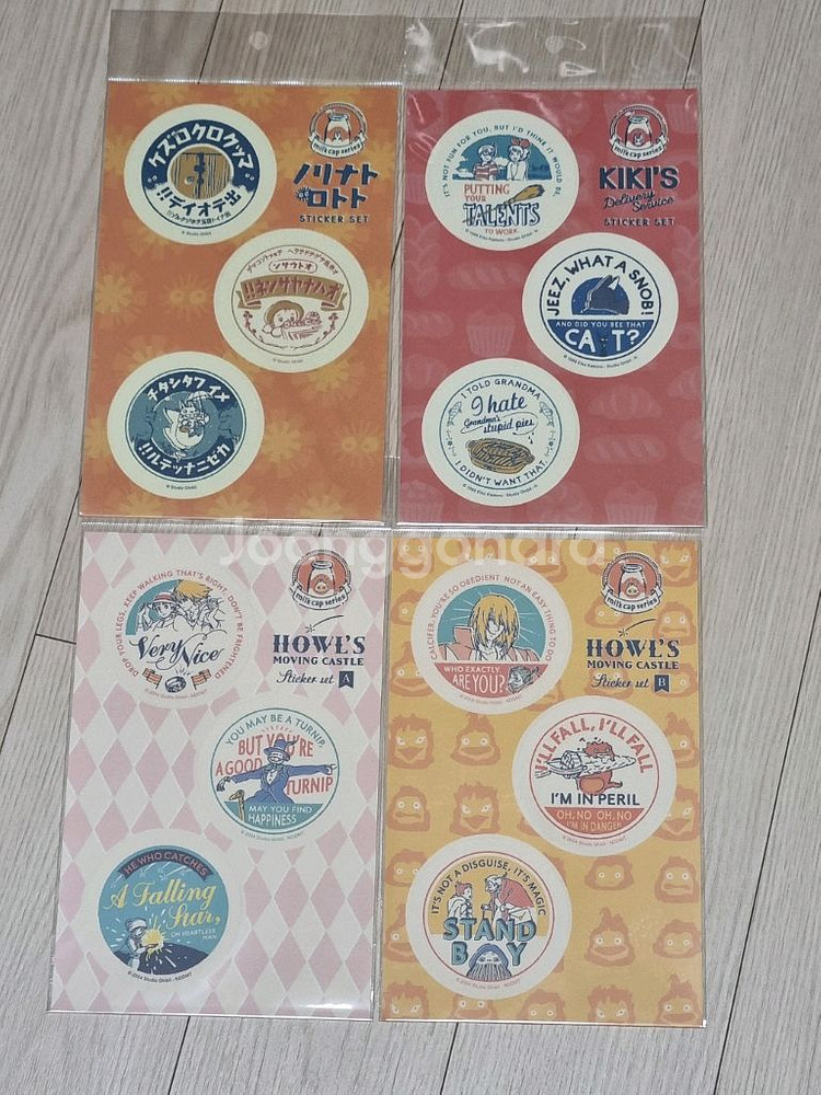 지브리 밀크캡/빈티지컬렉션 시리즈 스티커 판매합니다 토토로, 마녀배달부 키키, 하울의 움직이는 성 2종 총 4종 있습니다 사이즈 19×12, 스티커 자체 사이즈는 직경 6cm로 꽤 큰편입니다 미개봉 새상품이고 암실보관이지만, 구매당시부터 같은 종류라도 색감차이가 약간 있었고 발매된지 오래된 제품이라 완벽하지 않을 수 있습니다 개당 8000원 -> 6000원 이고 4종 일괄 우대합니다 4종 일괄 구매시 반택포 25000원에 거래합니다~ 재고는 종류당 2장씩 있어요! 배송방법은 준등기 +1800, 반값 또는 알뜰택배 +1900~, 편의점택배 +3700~, 우체국택배 +4000 가능합니다 스티커만 구매시 택봉 배송됩니다 박스 배송을 원하시는 분은 결제 전에 꼭 얘기해주세요