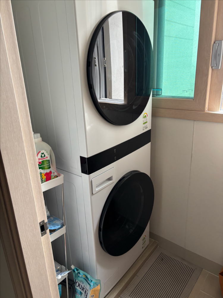 LG 워시타워입니다 세탁기와 건조기가 일체형으로 되어있어 공간 활용에 좋습니다 - 인공지능 DD로 옷감 손상 없이 세탁 가능 - 트루스팀으로 99.99% 살균 25년4월 구매 제품 입니다