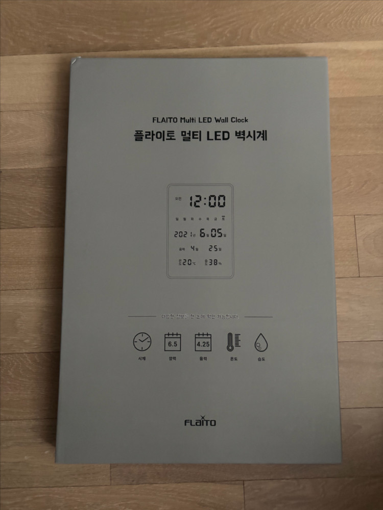 플라이토 멀티 LED 벽시계입니다 우드 대형 모델이며, 온도와 습도 표시 기능이 있습니다 구매 가격은 249,000원입니다