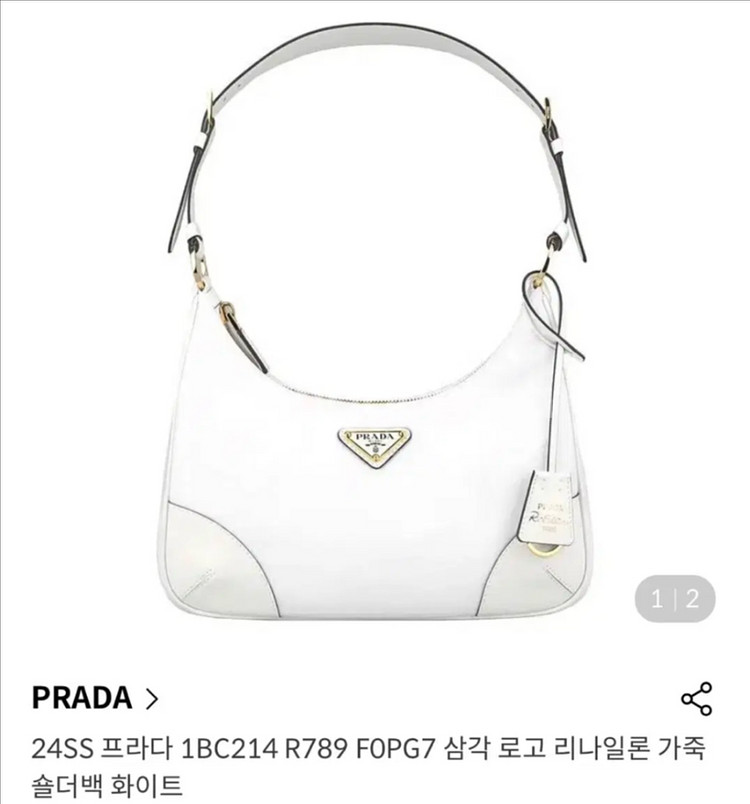 정품 화이트 리나일론 가죽 숄더백이에요. 삼각 로고가 포인트이고 골드 지퍼로 고급스러운 느낌입니다. 상태 양호한 제품으로 데일리용으로 활용하기 좋아요. 새상품으로 로고 비닐도 안 벗겼어요. 비슷한 가방이 많아 처분합니다.!