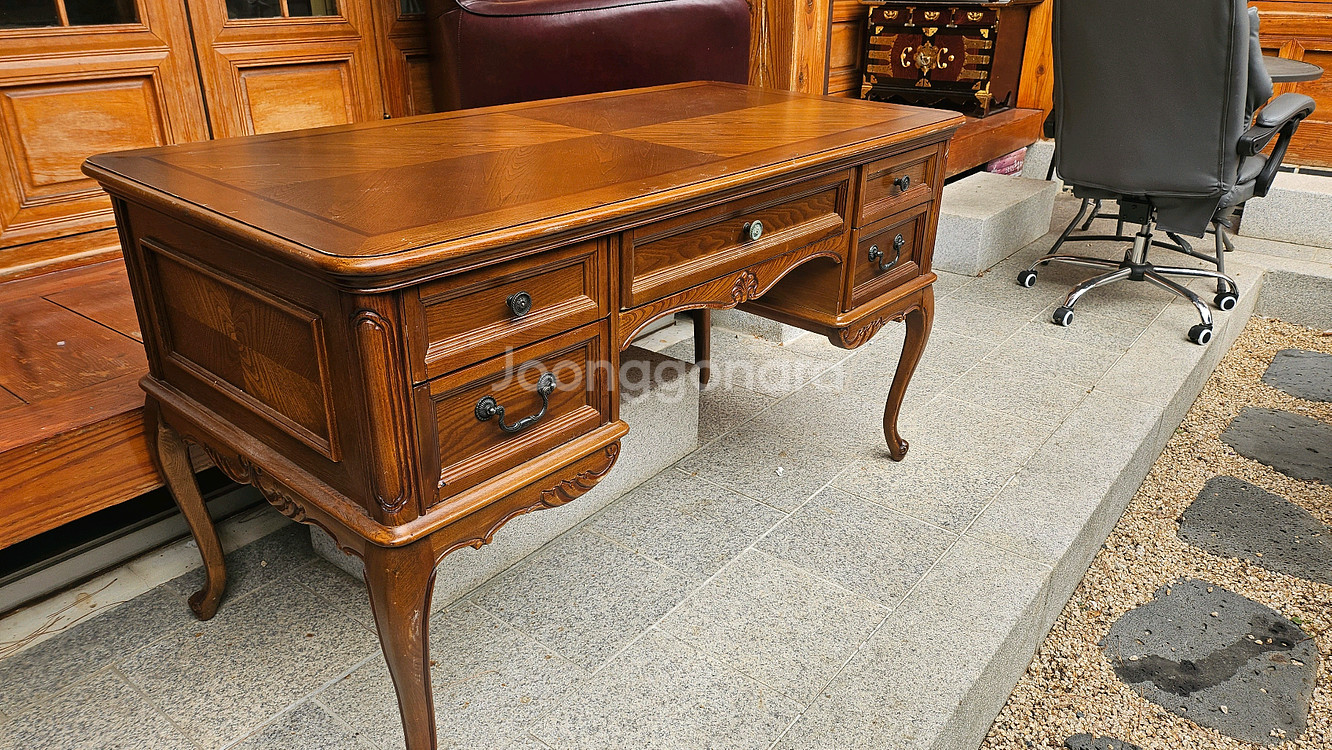 엔틱스타일 책상 140X 70X80 가로.세로.높이 책상윗면 구석에 기스가 조금 있어 싸게 내놓습니다 두꺼운 상판유리 포함입니다