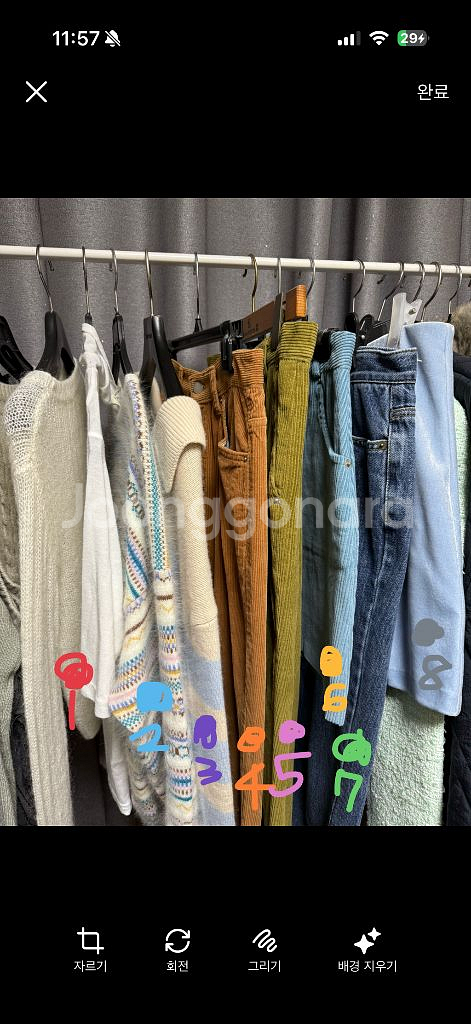 개당 5천원에 판매해요 비싼옷도 많은데 정리차 개당 무조건 5천원에 판매해요 자세한건 제품 번호(1-8번) 골라서 문의주세요 에눌 및 가격제시 하지 마세요❌ 이번주까지 판매하고 안팔리는건 모두 정리해요 중고감안 ㅡ교환환불불가 택배비 별도 추가 1. 아이보리 니트+(반팔폴라티는 필요하면 드립니다) 2.컬러 패턴 니트 3.줄무늬 카라니트 4.골덴브라운팬츠 5.카키올리브골덴 6.하늘골덴스커트 7.데님팬츠 8.벨벳하늘스커트
