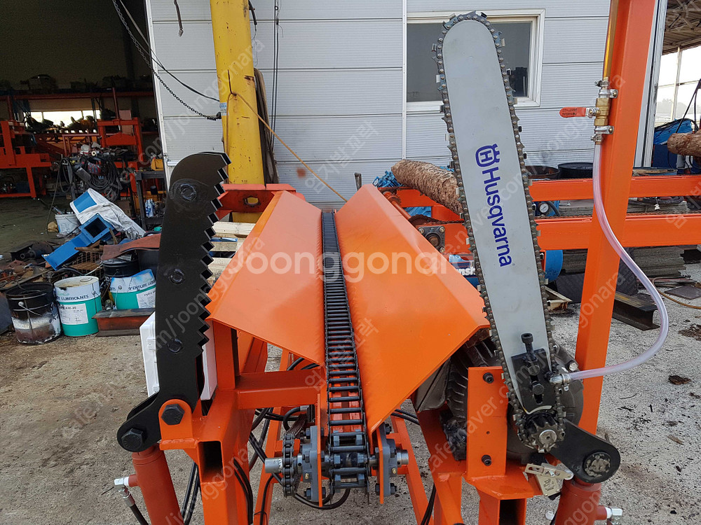 상품 설명: 원목을 사이즈에 맞게 절단할수 있는 원목절단기 입니다. 톱은 20인치여서 지름 400까지는 무난합니다. 1차적재이송 -- 2차이송 -- 집게 -- 절단 입니다. 사용하기 쉽게 제작되었고 자가정비 및 업그레이드 가능토록 됐습니다. 부품은 일반적으로 쉽게 구입가능합니다. 위치는 충남 논산시 문의는 010-5434-7687
