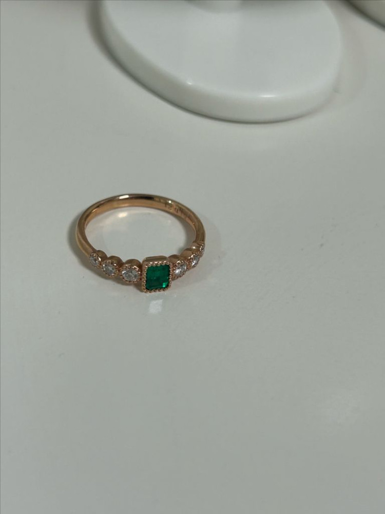 케이앤젬 14k 로즈골드 11.5호 천연 콜롬비아 에메랄드 0.25캐럿, 보조석 천연 화이트 다이아몬드 중심석 에메랄드의 컬러,인광,투명도가 엄청난..제품입니다. 실착 5회 미만이며 감정원의 감정서 및 보증서 함께 보내 드려요. 정가 119만 --> 101만 (배송비 포함) 안심결제는 이용하지 않습니다. 구매하실 분만 연락 부탁드려요. (중량거래 안해요/택배로 보내드려요/제품 특성상 반품불가)