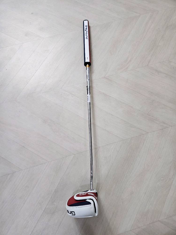 골프 퍼터입니다. 헤드커버도 함께 포함되어 있고, 전체적으로 사용감은 있지만 상태 양호해요. 골프 실력 향상에 도움될 좋은 퍼터입니다! 반품.환불 불가