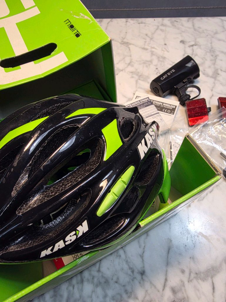 KASK MOJITO 자전거 헬멧 L 사이즈 Nero-Lime 색상입니다 박스에 표기된 사이즈는 59-62cm 입니다 턱끈패드 새것 장착했어요