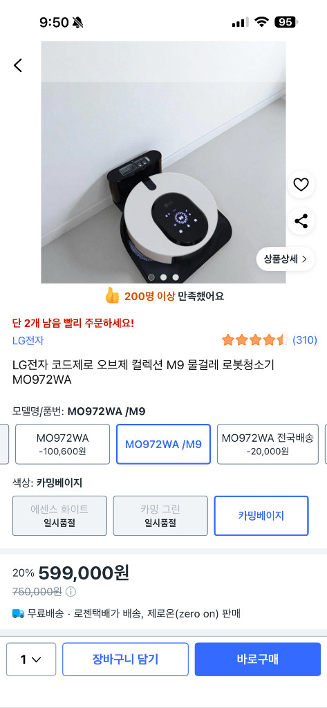 개인정보(거래정보)를 주고받는 행위는 사기에 노출될 수 있으므로 즉시 중고나라로 신고해 주세요LG 코드제로 오브제컬렉션 M9 물걸레 로봇청소기입니다 - 꼼꼼한 물걸레 청소로 깨끗한 환경을 유지할 수 있습니다 - 스마트폰으로 청소 예약, 모드 설정이 가능합니다 - 카밍베이지 색상으로 인테리어에도 잘 어울립니다 물걸레포함 충전기세트 포함