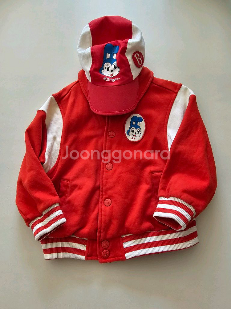 베베드피노 빨간색 점퍼 110사이즈와 모자입니다 귀여운 메르시 버니 캐릭터가 포인트! 상태 좋습니다 세탁완료고 다른 옷들이 많아서 몇번 못 입혔습니다