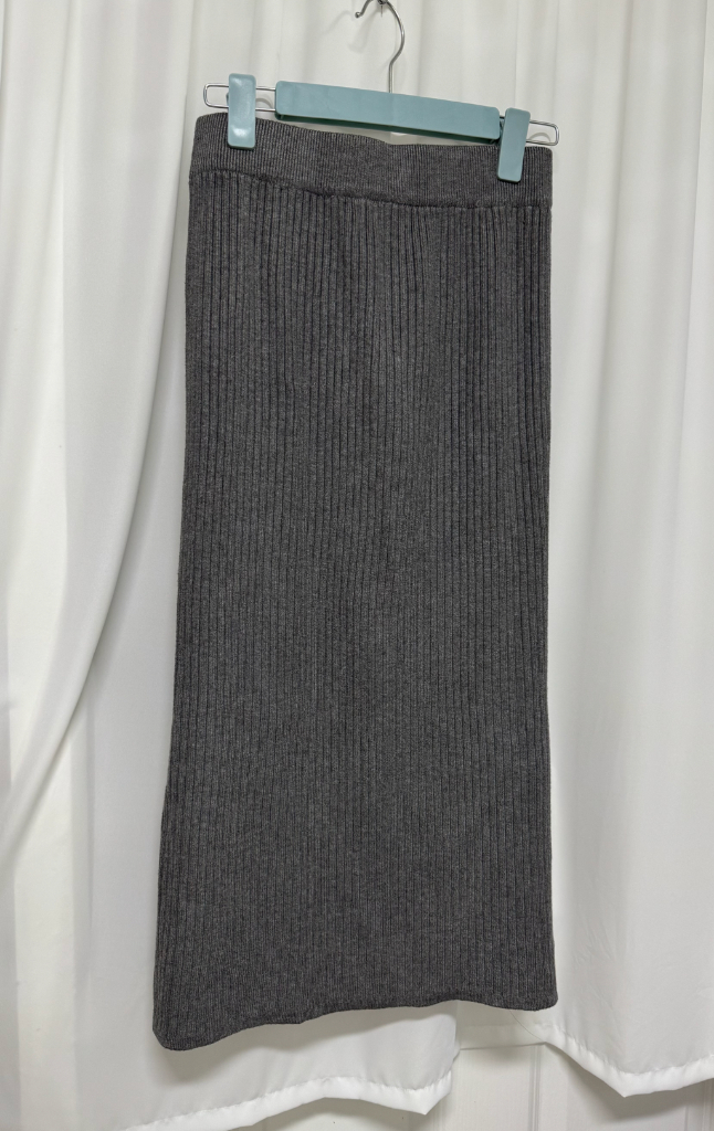 그레이색상 니트 롱 스커트 새상품 판매합니다. 면 폴리 혼방에 부드럽고 탄탄한 골지니트 소재로 제작되었고, 트임이 있어 활동성도 좋습니다. 그리고 허리 밴딩이라 편하게 착용가능하세요 ^^ 실측허단 33.5~45(올밴딩) 총장 80으로 기장감도 좋습니다🥰