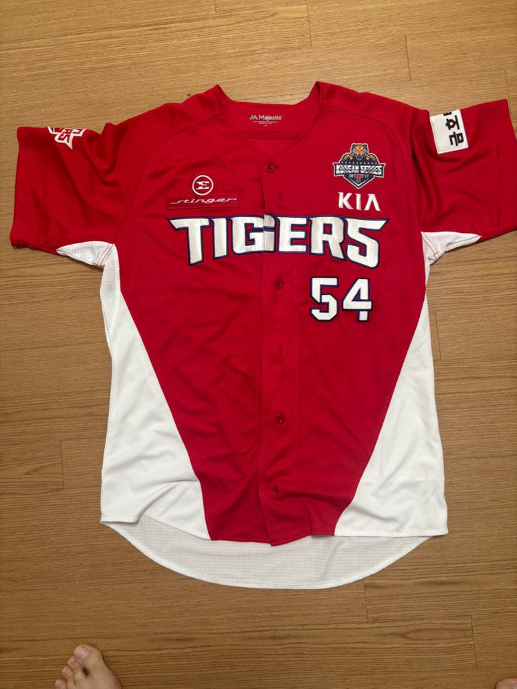 기아타이거즈 양현종 2017년 원정 유니폼입니다. 2017년 한국시리즈 패치 부착되어 있습니다. 마킹은 양현종 선수 마킹 되어 있습니다. 2017년 한국시리즈 당시에 사용한 패치가 부착되어잇으며 지금은 찾기 어려우십니다