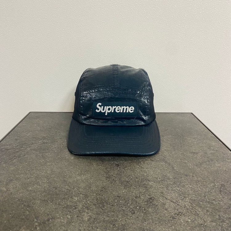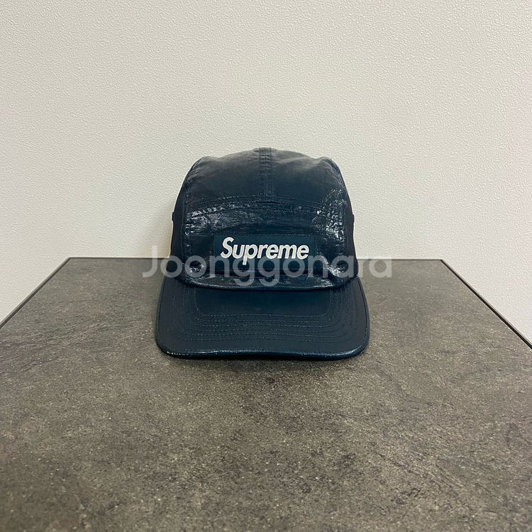 (OS) 슈프림 박스로고 캠프캡 모자 코티드 린넨 블루리쉬