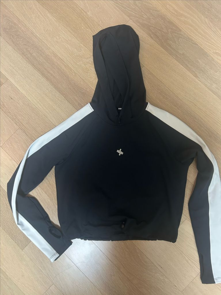 부담스럽지 않은 배 가려주는 기장이에요 손들면 보입니다 나이가 잇어서 저는 조금 부담스러워서 몇번 착용안햇어요 상태좋아요 손가락 끼는 부분도 잇어서 입으면 너무 이뻐요 평상복으로도 괜찮아요 택포2만원 싸게드려요