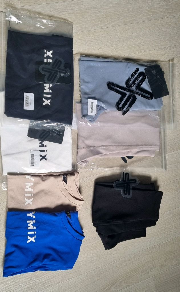 젝시믹스 전부s사이즈 보간기간으로 인한 중고감 있을 수있습니다. 비닐안에 있는 제품 >새상품 검은색하의>1회 시착 베이지상의>택만 뜯음,미시착 파란색상의>소수착용ㅇ,세탁ㅇ