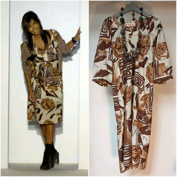 색감,패턴,소재,디테일,실루엣 모든게 너무나 조화롭게 예쁜 마르니의 멋스런 추상패턴 반소매 실크 원피스입니다. 디자이너 중에서도 옷 잘 입기로 유명한 마르니의 창립자 겸 전 디자이너인 콘수엘로 그녀 자신이 당시 컬렉션 피날레 의상으로 초이스했을 정도니 특별하고 의미있는 아카이브 피스라고 생각됩니다. 38(S)사이즈로 신축성 전혀 없는 실크 소재에다 하이웨이스트라 44~상체 작거나 마른 55 권장드립니다. 실측: 겨드랑이 직경 약 42.5,총장 약 100cm 직관적으로 보시기 쉽게 사진으로도 첨부했으니 꼭 확인해 주세요. 겨드랑이 근처에 미세 이염 외 상태최상이며 명품 드라이클리닝까지 새로 해놔서 받으시고 바로 착용가능하십니다. 마르니를 사랑하거나 안목 있는 분께서 득템하세요.
