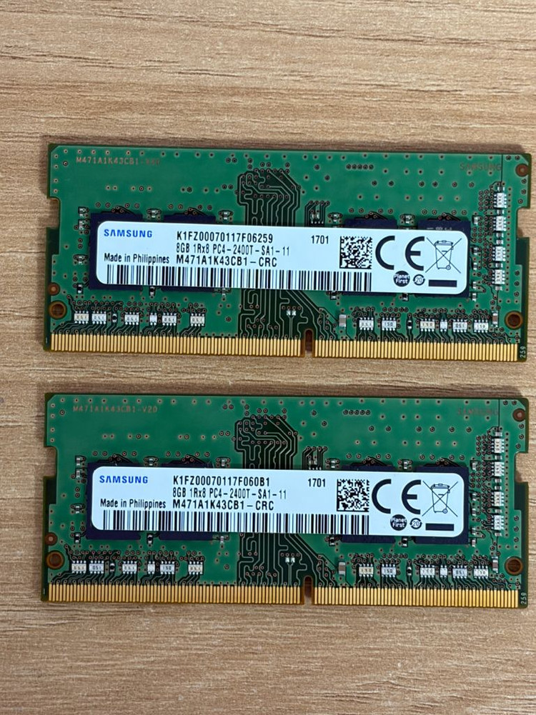 삼성 DDR4 8GB 2400MHz 노트북 램 2개입니다 PC4-2400T, M471A1K43CB1-CRC 모델입니다 - 향상된 대역폭으로 빠른 데이터 전송이 가능합니다 - 더 낮은 전압에서 작동하여 전력 소비를 줄여줍니다 일괄 시 11.5만원. 각개 가능 개당 6만원. 서울 강남 개포동/ 경기 성남 판교 삼평교 인근 거래 가능. 이외 택배 발송 (편의점 일반택배) 글이 남아 있으면 아직 남아 있는거니 편하게 연락주세요 감사합니다