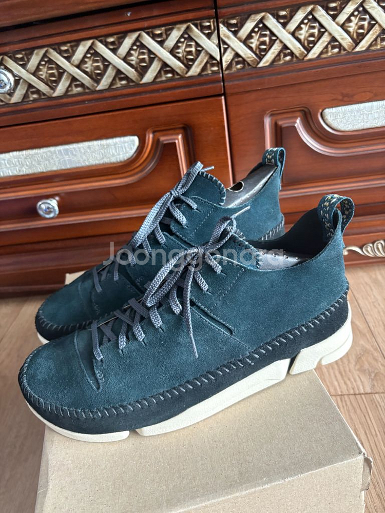클락스 남성 트리제닉 진청색 UK 8(운동화기준 275)새제품 클락스(Clarks)의 "트리제닉"씨리즈는 클락스의 상위 레벨 제품으로 최초 단가가 높은 고급 신발이에요. 보행 시 특히 발바닥과 뒤꿈치 쪽의 압력을 분산 시키는 기능이 있어서 엄청 편안한 스니커즈! 완전 새제품~ 스타일 : 디자인의 디테일이 멋스럽고 고급스러운 느낌을 주고 있음! 전체를 감싸는 가죽은 스웨이드! 일명 세무~ 특히 바닥창은 트레킹화 또는 등산화에 많이 사용되는 이태리 Vibram(비브람)을 사용해서 접지력이 좋아요 색상: 2톤(진청+블랙) 스타일: 청바지 그리고 네이비색상 면바지에 코드를 추천! 사이즈 : UK 8 참고) 보통 운동화 나이키, 아디다스, 리복 등의 운동화 275 정도 신는다면 잘 맞을거에요 사이즈 문의 환영! 가격협의 문의 사절~ 담았던 박스가 회손되어 다른거에 담아서 보내드립니다. 가격협의 절대없으니 사절!