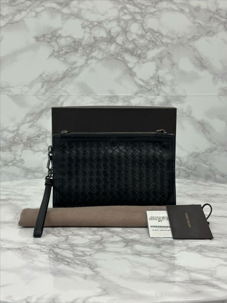 .✦ BOTTEGA VENETA 인트레치아토 클러치 블랙 미니 ✦ 보테가 베네타를 대표하는 시그니처 위빙 디테일, **인트레치아토(Intrecciato)**가 돋보이는 미니 클러치입니다. 로고 플레이 없이도 브랜드 아이덴티티가 분명하게 드러나는 모델로, 미니멀하면서도 고급스러운 분위기를 완성해주는 아이템입니다. 컴팩트한 사이즈로 세컨드 백 또는 데일리 클러치로 활용하기 좋습니다. ▪ 제품명 / 코드 : 496418 VQ131 ▪ 사이즈 : 약 22~23cm ▪ 컬러 : 블랙 ▪ 컨디션 : 9 / 10 (생활사용감) 사용에 따른 자연스러운 생활 사용감은 있으나 전반적인 컨디션은 안정적으로 유지되고 있습니다. ▪ 구성품 박스 / 더스트백 / 제품택 / 제품설명서 / 본품 풀구성 ▪ 판매가 : 600,000원 인트레치아토 라인은 유행을 타지 않는 보테가 베네타의 아이코닉 라인으로, 실사용과 소장 가치 모두 고려하시는 분들께 적합한 모델입니다. 📌 중고 상품 안내 중고 상품 특성상 미세한 사용감 또는 검수 과정에서 확인되지 않은 부분이 존재할 수 있는 점 구매 전 참고 부탁드립니다.